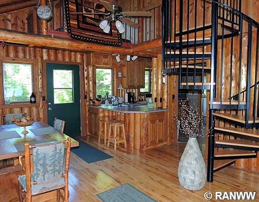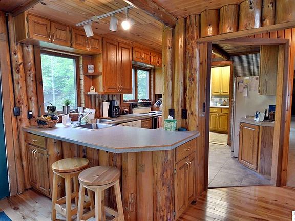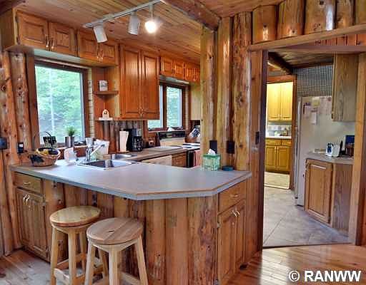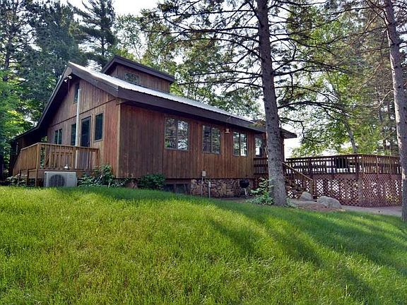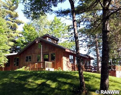 Adorable cabin with knotty pine interior, open beams, wood floors. Original cabin was built in 1947 - nice blend of the classic original and the new addition. Beautiful, south-facing lot with island views. Sandy shoreline - boat house and dock included.