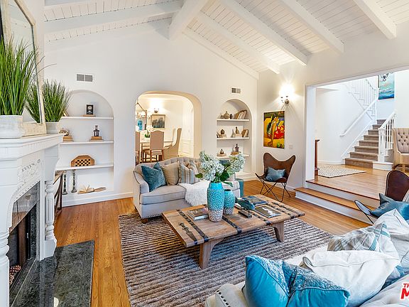 North of Montana and set in the middle of the block stands this updated stunning Spanish home. With 4 bedrooms plus an office/5th bedroom, 4bath this turn key two-story home features gleaming wood floors, recessed lighting and a floor plan that is perfect for any size family. The large living room anchored by a classical picture window, a large elegant dining room perfect for dinner parties all year long. Newly remodeled kitchen features all new stainless-steel appliances, and designer finishes with all the bells and whistles. A breakfast area and a center island all open to the large family room overlooking the park like setting outside, this is SoCal living. The master retreat is light and bright with a private balcony, walk-in closet and a gorgeous updated spa like bath with dual sinks, soaking tub and a free-standing shower. Spend the summer frolicking in the pool or entertain guest on the covered patio. Lushly landscaped and private this is a great yard with tons of privacy.