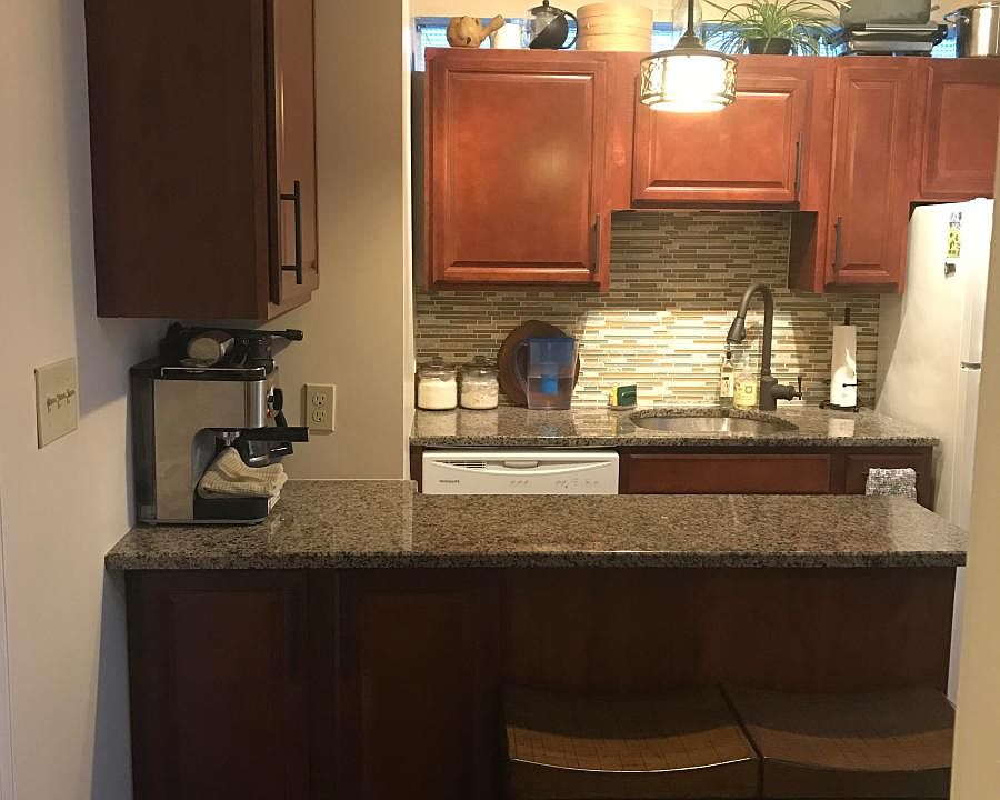 This recently renovated one bedroom apartment is located in historic downtown Easton within walking distance to Lafayette College and the famed Center Square Farmer's Market . It is located in a secured building on the second floor and features central heating and air conditioning, granite kitchen counters with mosaic tile backsplash, premium cabinets and matching appliances that include a refrigerator, flat top electric stove, dishwasher and above the range microwave oven. Coin operated laundry facilities are located on site.