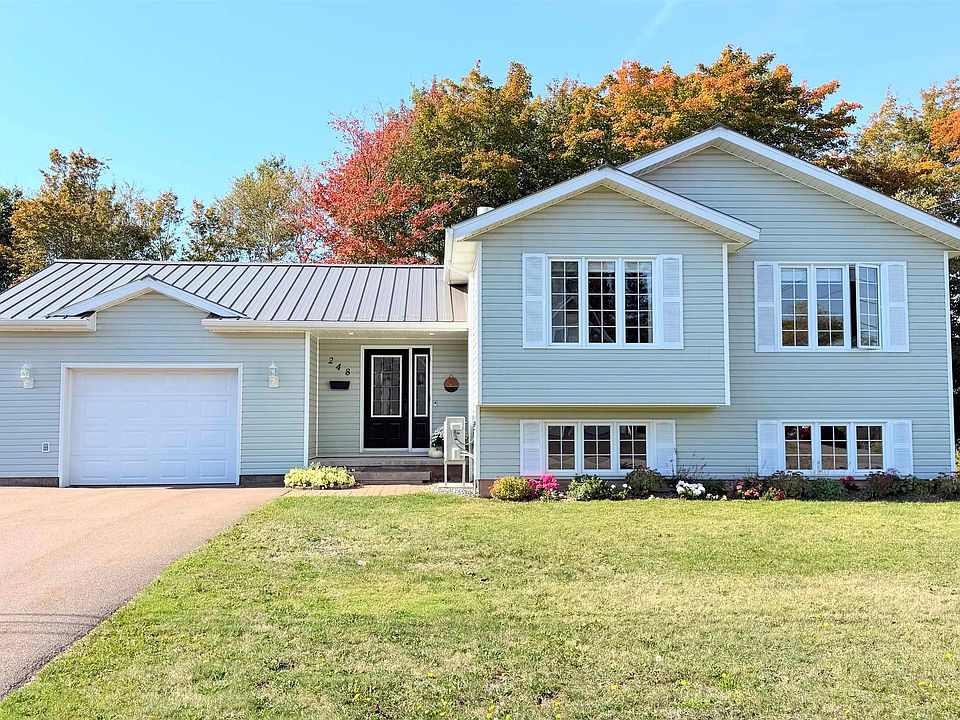First time on the market! Come take a look at this immaculate 3 bedroom, 3 bathroom home located at 248 Colin Avenue Summerside's desirable Bluebell Subdivision. Built in 2000, this thoughtfully designed home has been extremely well maintained. Featuring a spacious front entry/mudroom area with 2 closets, as well as access to both the garage and back yard. On the main level you will find the beautiful & bright eat in kitchen, featuring quartz countertops, updated appliances, and a 2nd access to the 2 level deck. Off the kitchen you will find the living room area, featuring a cozy propane fireplace and hardwood flooring. The primary bedroom includes a walk-in closet & ensuite. Down the hall there is a 2nd full bath and another good sized bedroom. The lower level is fully finished and includes a generous rec room area with a second heat pump, as well as in floor heat. There is also another spacious bedroom, a third full bathroom with laundry, and a Utility room which provides even more storage. Outside you will notice even more great features such as the steel roof, 10x12 shed, and the treed backyard giving you lots of privacy while relaxing on the deck. The best part? Location. Just a short walk to Rotary park, confederation trails, Hospital, grocery stores, and everything Summerside has to Offer!