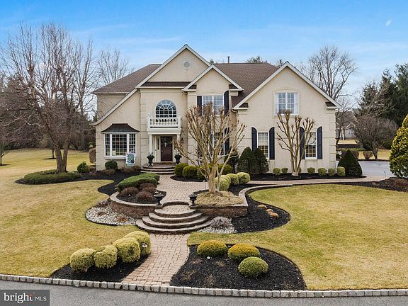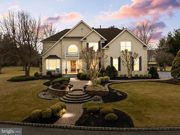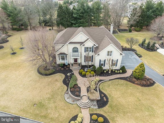 An Exceptional Laurel Creek Golf Course Community Property! Updated, Upgraded & Turn-Key! This Laurel Creek Estate Home blends traditional styling with contemporary features, taking full advantage of its stunning 0.63-acre landscaped grounds for ultimate privacy. The elegant exterior and side-entry three-car garage feature hipped rooflines, a beautiful Palladian window, and an attractive bay window with a copper roof with professionally landscaped grounds provide a fabulous welcome. As you step into the foyer, you're immediately greeted by the breathtaking expanse of a two-story ceiling with handcrafted woodworking, creating an airy and open atmosphere. Dominating the foyer is a stunning turn staircase with beautifully crafted wrought-iron railing that adds a touch of sophistication. Gleaming upgraded hardwood floors run throughout the main level, excluding the family room. The spacious formal living and dining rooms are divided by elegant columns, each boasting oversized windows, custom millwork, and neutral décor. The first-floor private study offers a handsome crafted desk making it the perfect space for working from home. Defining the heart of the home, the open chef’s kitchen with a breakfast area features granite countertops, a center island, and stainless steel appliances. The family room is an incredible space to relax and enjoy, with its soaring two-story ceiling, open sightlines, and a focal wall featuring an attractive stone fireplace flanked by windows for great natural light. Upstairs offers an open hall that overlooks the two-story foyer below. A double-door entry leads you into the impressive primary suite, which incorporates a sitting room with decorative columns and two large custom walk-in closets. The private ensuite bath is complete with a luxurious soaking tub, stall shower, dual vanities, water closet, and full linen closet. Three additional generously sized bedrooms with ample custom closet space are located on the second level, including one ensuite bath and a Jack-and-Jill bath. Return to the main level via the rear staircase overlooking the family room. The attention to detail continues in the finished lower level, which includes a full bath, recreation room, and the ultimate man cave | sitting room with a gas fireplace not to be missed. French doors from the breakfast area lead to the expansive, gorgeous two-tiered hardscaping patio, complete with a grilling area and custom brick fire pit, all surrounded by lush green foliage and a generous backyard. Additional highlights include a 2-zone HVAC (2019 & 2021), newer roof (Nov. 2021), and hot water heater (2019). Not much to do except pack your bags and move right in! Blue Ribbon Schools, conveniently located to major roadways with easy access to the Philadelphia, Princeton, and NYC metro areas. A stone's throw to Laurel Creek Country Club, a premier private club known for its beautiful and challenging 18-hole golf course designed by Arnold Palmer and club house amenities.