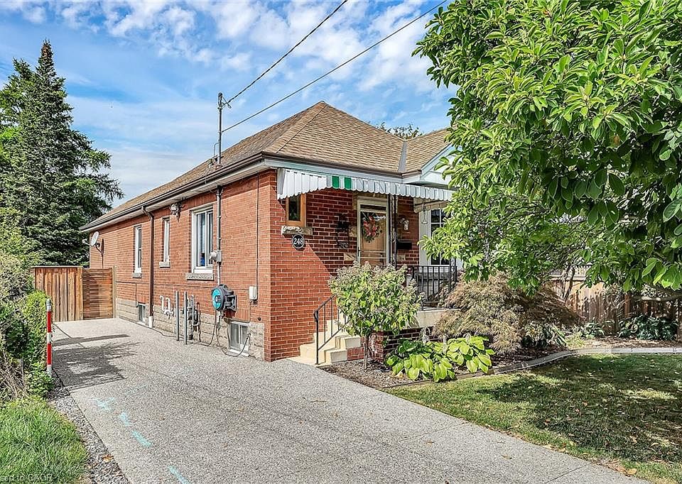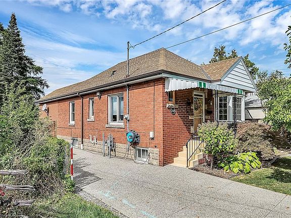 Very well kept carpet free 2 bedroom brick bungalow with bonus den (potential 3rd bedroom) & bright sunroom on nicely landscaped fully fenced lot in desirable central mountain location. Main floor offers open & airy living room with bay window & stone decorative fireplace surround, dining room & updated kitchen (2019) with quartz countertops & pot lights. Hardwood flooring throughout living room, dining room, bedrooms & den. Renovated bathroom (2016) with large spa-like separate shower & ceramic flooring. Cozy 3 season sunroom (roof re-shingled 2024) off primary bedroom & kitchen offers access to rear deck & yard. Most windows updated. Furnace & central air (2022). Newer aggregate exposed concrete driveway (2022). Peaceful & relaxing rear yard features deck, restful corner seating area & lovely stamped concrete patio & walkway plus gas BBQ hookup. Quick & easy access to the Linc. Close to all amenities.