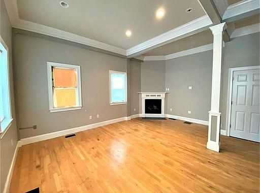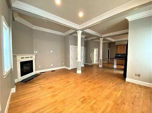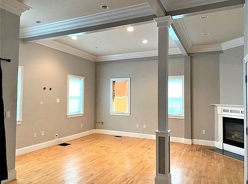 Great Condo Living in the Heart of South Boston's West Side ; 2 Beds, 1 Full Bath Open Concept with 1063 sqft of living space ; Soaring 13' ceilings accented by beautiful trim work, pillars and beamed ceilings with crown molding ; Maple hardwoods throughout ; Living Room has gas fireplace with access to small deck ; Kitchen is loaded with storage, has granite counters, a breakfast bar/peninsula with comfortable seating for 4, recessed lighting and stainless appliances (refrigerator, gas range, dishwasher, disposal, microwave) ; Master bed has 3 closets, sconce and overhead lighting ; 2nd Bed is also sizeable ; Full Bath has dual vanity with granite counter top, jetted tub with shower faucet, additional separate shower stall that is fully tiled ; Common laundry shared in basement ; Dedicated storage unit in basement for this Unit's use ; Common Roof Deck with awesome views of the City ; FHA/Gas with Central AC ; Convenient access to public transportation ; Showings start immediately