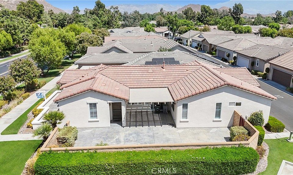 Welcome to this cozy, bright move-in ready corner Lot home is just cross from the lodge in 55+ community of Four Seasons in Hemet.This fully gated neighborhood with 24/7 security is surronded by serene hills and the Hemet Golf Course, offering a active adult lifstyle.This home set in corner with huge inclosed out door patio entry from kitchen for you to enjoy your morning coffee. Step inside to find out bright and airy living space featuring brand new ceiling fans,new Tile flooring,fresh painted cabinets with new hardware, wooden shuters almost throughout the entire house.Living area offers you to covered Alumawood patio cover area to sit for your afternoon get together with friends and family.