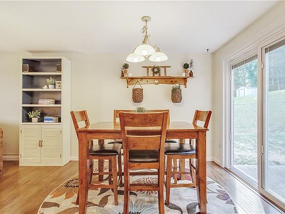Nicely updated home located in the heart of Moon Township. Remodeled kitchen w/granite counter tops and brand new stainless appliances. Wood laminate flooring on main level. Updated full bath. Master bedroom w/walk-in closet that can be converted back to a half bath. Spacious lower level w/half bath. Newer furnace, AC and hot water tank. Cement patio and shed. Fenced-in back yard. Extended driveway for added parking. Freshly landscaped. Move right in!