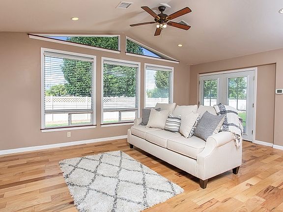 Welcome home! This spectacular home is nestled on .26 irrigated acres, in the small Mason Ridge Subdivision. Enjoy stunning custom finishes in truly open living, with vaulted ceilings, exposed wood beams, hickory hardwood floors, skylights, gourmet chef's kitchen, granite countertops, large island, walk-in pantry, and three ovens (perfect for hosting the holidays). French doors in the living room lead out to a private and professionally landscape yard, with breathtaking mountain views. The spacious master suite has a walk in closet and large master bath with double vanity and marble shower. The laundry room is equipped with custom cabinets, a folding area, and utility sink. The oversized 2 car garage is conditioned/heated, and equipped with a work bench and 220V/110V power outlets. The 16 X 10 utility shed in the backyard has 110V power and lights. Low-fee HOA maintains the common area