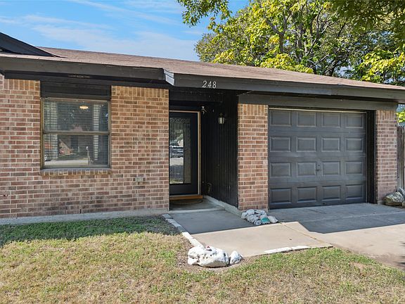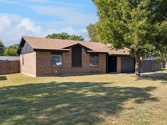 Charming 3-bedroom home in the peaceful Eagle Mountain View community with no HOA! This single-story brick home features an open floorplan with ceramic tile and laminate flooring throughout. The spacious living area flows into a functional kitchen with built-in cabinets, electric range, and microwave. A 24x14 addition provides flexible space perfect for a game room, second living area, or home office. The home also includes central HVAC, ceiling fans, and a compact utility area that accommodates a full-size washer and dryer. Step outside to a private, fenced backyard with a storage shed and additional space for RV or boat parking. Nestled on a 0.257-acre lot in Azle ISD and just minutes from Eagle Mountain Lake, parks, and local shopping, this move-in ready home delivers comfort, convenience, and freedom from HOA restrictions.