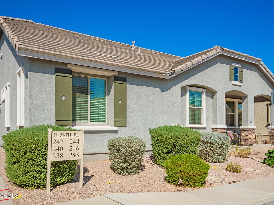 Welcome to Albany Village - a beautifully designed community situated in the heart of Mesa. Just Built in 2018 by William Lyon Homes, this single-level home has been impeccably maintained by the original owners and SHOWS LIKE NEW! The inviting floorplan features 2 bedrooms, 2 bathrooms and a bright great room layout with an open kitchen, HUGE center island/breakfast bar & a charming front porch. Enjoy a private backyard with an upgraded paver patio + the convenience of an attached 2-car garage. Albany Village offers a central community space with a community pool, children's playground & beautifully landscaped greenbelts and walking paths. The HOA also maintains the front yard + common area landscaping - perfect for low maintenance living!