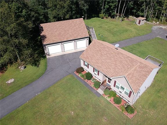 Welcome home to this beautiful and meticulously-maintained raised ranch featuring all the amenities you could need! Gorgeous, renovated kitchen featuring stainless steel appliances, granite, and all the counter space you could need! Off of the kitchen is a dining area that flows into the main living room with three large windows for an abundance of natural light. Look up and admire the 15 ft ceilings with recessed lighting. The main floor also houses the three bedrooms including a master suite which features its own updated master bath. One more full bath can be found on the main floor just feet away from the additional bedrooms, perfect for guests or children to share! Downstairs is a finished lower level, featuring the third full bath and laundry room. The property features three outbuildings: a large 3-car detached garage with loft storage, an additional single car garage and a shed for storage.