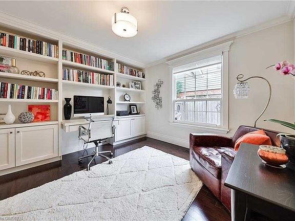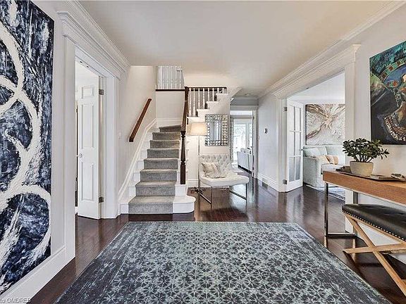 Picturesque home on a mature lot nestled within highly desirable Old Oakville. This house is steps from downtown, Lake Ontario, and has convenient access to GO train transit. The stunning gourmet kitchen boasts granite counters, a breakfast bar, custom cabinetry, stainless steel appliances, and an eating area. The family room has an open flame gas fireplace, custom-built bookcases, and overlooks the backyard that is perfect for entertaining. Additional main level features include a formal den/office with custom cabinetry and a built-in desk. The combined living room/dining room features a lovely open area with a French door entrance. The Master bedroom includes a spa-like ensuite with a soaker tub and his & hers walk-in closet. An additional three bedrooms with a full bathroom complete this second-floor level. The basement is professionally finished and includes a fitness room, a recreation room with a gas fireplace, and a 5th bedroom. Stunning, beautifully appointed home.