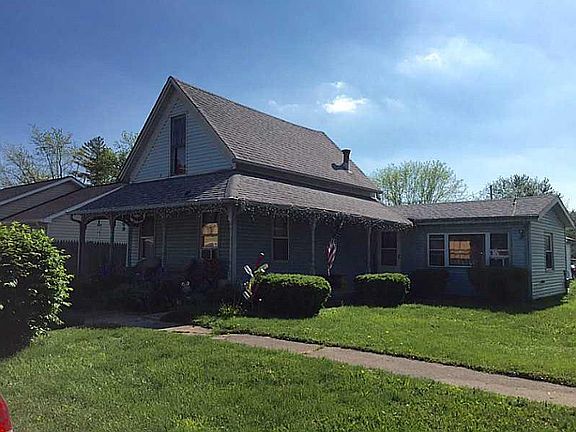 Cute home in a small town! Home features a very large front and side porch, newer windows, a 2 year old furnace, newer roof, an oversized detached one car garage, a formal living room, and tons more. Home is being sold AS-IS.