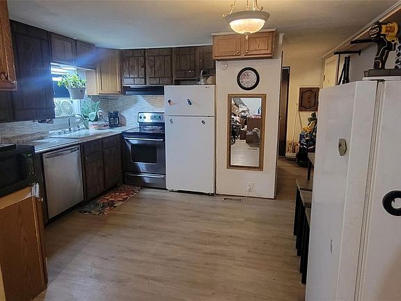 Move-in ready 3 bedroom 2 bathroom manufactured home for sale in Bennett and NO lot rent. The home sits on its own lot in the heart of Bennett with easy access to Schools, King Soopers, Family Dollar, multiple restaurants, Library, Park and quick access to I-70 for easy commute. New flooring and paint throughout. New covered front deck in 2023. New vinyl windows installed in 2021. The furnace was just cleaned and passed inspection. Has a shed for storage with a dog house inside and access to a dog run. Has a chicken coop and bunny hutch. The fenced front/side yard has a garden area and grass lawn for kids to play on. Washer and dryer included. Affordably priced for the area. This property will make a fantastic cash flowing rental as well.
