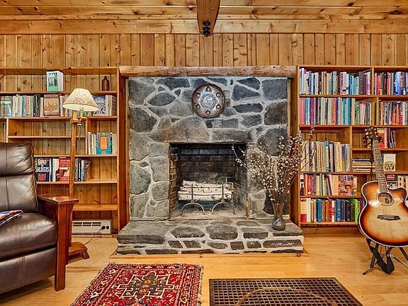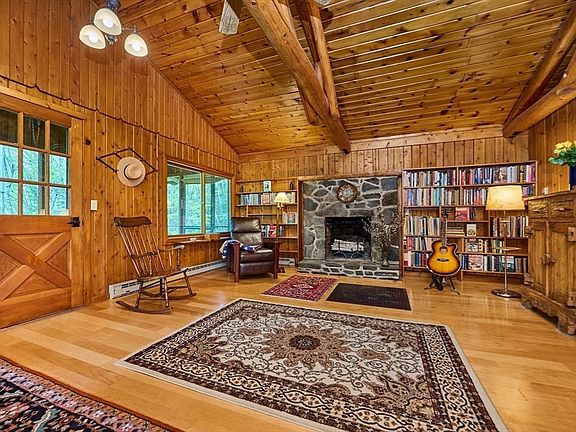 Nestled in the woods on a peaceful and private 11-acre setting, this rustic style cedar home is a welcoming countryside escape. The property features an open meadow, garden area, and borders conservation land with trails and streams, a true paradise for nature lovers. Inside, the cozy wood interior has kitchen open to the dining and living area with exposed beams, a cathedral ceiling, and an attractive stone fireplace. Features include three bedrooms, 1.5 baths, wood floors, built-ins, a walk-out basement, and a standing seam metal roof. Enjoy the beauty of the outdoors from the spacious wraparound porch and deck, perfect for relaxing or entertaining. A detached two-car garage provides additional storage space. Conveniently located 25 minutes from Northampton and near the Berkshires. This special property offers easy access to a variety of cultural and recreational activities. Ideal getaway or a comfortable year-round residence, schedule a visit today!