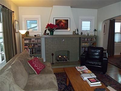 This bungalow is bursting with arts and crafts detail, updates galore. Exudes warmth and charm in desirable Oakwood neighborhood. Welcoming front porch with swing. Inviting living room features vent-free gas FP with mantle, brick surround and hearth, and classic 40-pane window, with immaculate hardwood floors leading into dining room. Cheerful kitchen with breakfast nook, two comfortable bedrooms with great closet space, and full bath complete first floor. Master suite, with full bath, ample closets, sitting area, built-in bookcases make for a retreat-like hideaway on second floor. Excellent versatility. Partially finished basement offers still more versatile space - cozy family room, recessed lights, glassblock windows. Utility space allows for ample storage, room for crafters, workshop, space for hobbies, even has an extra shower! Newer plumbing, electric, furnace and windows. One car garage, back patio and perennial garden, haven to birds and butterflies. Near schools, shops, park.