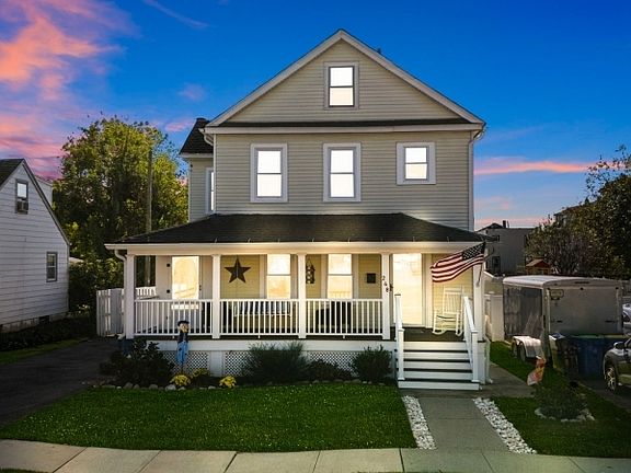 This timeless Colonial exudes pride of ownership inside and out! If a wrap-around porch has always been on your wish list, you'll love this one complete with a swing and a screened-in spot to relax any time of day. Step inside the light-filled foyer and you'll be greeted by hardwood floors throughout, radiating warmth and character. The open-concept kitchen is equipped with stainless steel appliances, raised-panel cabinetry, gorgeous granite countertops, and a center island with pendant lighting and additional seating. The dining room features a charming free-standing wood-burning stove perfect for chilly winter nights and a powder room completes the main floor. Upstairs, you'll find three generously sized bedrooms, including one with a cedar closet. A walk-up attic offers bonus storage and future potential. The finished basement provides even more living space, complete with recessed lighting, a full bath with shower, and a laundry room; ideal for recreation or work. Out back, enjoy the covered and screened Trex deck, perfect for dining or lounging after a refreshing swim. Car enthusiasts will love the oversized, detached two-car garage with tall ceilings perfect for a lift. Best of all, this property qualifies for a program offering a reduced interest rate and no PMI for qualified buyers making ownership even more attainable. Come see why you'll want to call this one home!