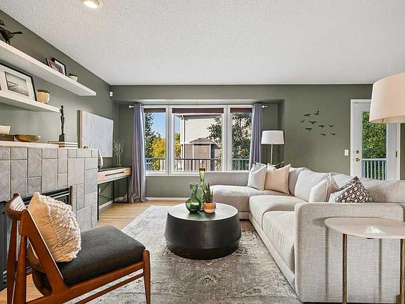 Welcome to this beautifully updated townhome offering the perfect balance of style, function, location, and air conditioning. Tucked into the quietest, most private spot in the complex, this home backs onto a peaceful greenbelt. Inside, you’ll find a spacious, light-filled floor plan with a gas fireplace on the main level where a large living room and dining room flow perfectly together. A huge west-facing balcony carries out of the living room and is perfect for entertaining or relaxing in the sun. The kitchen has been tastefully updated with modern backsplash, stainless steel appliances, plenty of cabinet space and moveable island. Upstairs features two generous bedrooms plus a versatile loft space, perfect for a home office or gym. The primary suite is a true retreat, boasting an oversized walk-in closet and access to the 4 piece bath with large soaker tub. Comfort comes easy here with air conditioning, a newer furnace and hot water tank (both within the last 5 years), and a washer and dryer not even 3 years old. Plush newer carpet throughout adds warmth, while the oversized tandem double garage provides abundant parking and storage. Enjoy the best of both worlds—nestled in a low-traffic, quiet area yet just minutes to downtown, Telus Spark, the Zoo, Calgary’s river pathways and ideally located up the hill from all that Bridgeland has to offer, but without the congestion of high-density living. This is one of the best locations in the complex—don’t miss the chance to call it yours!