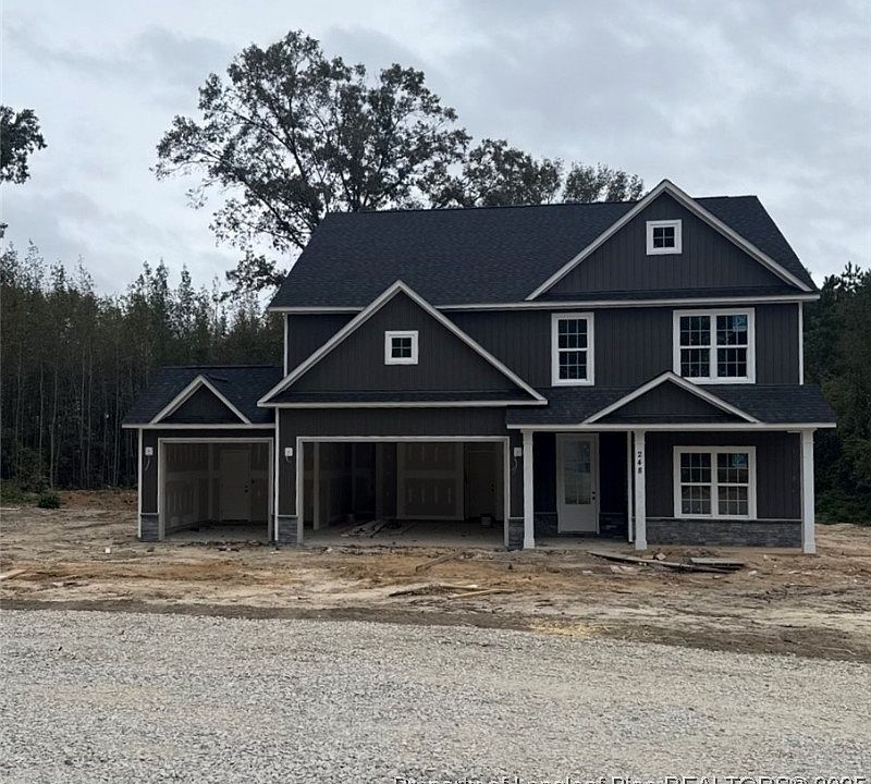 BEAUTIFUL NEW CONSTRUCTION HOME BY MAEBUILT~ 4BR 2.5 bath home nestled on 2+ acres. Home features a Lg family room w/electric FP ~Kitchen w/ an ISLAND/farmhouse sink/bar seating, pantry & breakfast nook. SS Microwave/Range & DW. LR/Playroom or office this home has it. Formal Dining Room in front of home~1/2 bath down for guest. ALL BR located on the 2nd floor. Enjoy a HUGE entertainment room/loft. MBR w/Trey Ceiling, Ceiling Fan and WIC~Master Bath has DBL Vanity, Garden Tub and separate shower. Home includes a 3rd car garage with garage door openers and rear exit door. NO HOA. Don't miss this country setting minutes from city living. Close to Ft Bragg (Liberty)/Pinehurst/Southern Pines. Listing agent is related to builder. Home is framed at the time of listing. Christy Strickland w/Atlantic Bay Mortgage is our preferred lender and will offer additional incentives. (910-574-2105) NMLS#1112903 Christystrickland@atlanticbay.com.