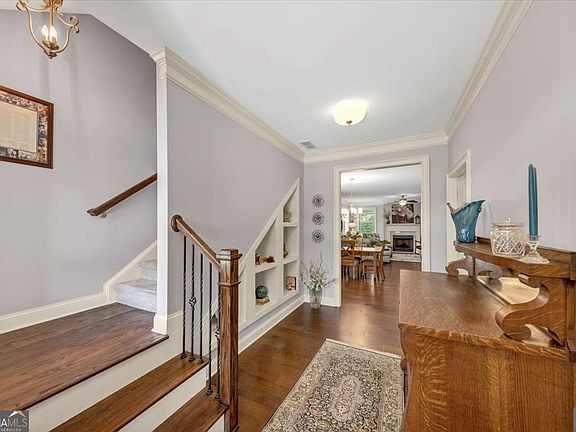 Peaceful and quiet! A beautifully designed and well maintained home located in the 55+ active, adult community of Barrett Preserve. This residence offers a perfect balance of style, comfort, and low-maintenance living. From the inviting covered front porch, step into a spacious foyer featuring built-in bookshelves, setting the tone for the home's character and craftsmanship. The open-concept design flows effortlessly into the gourmet kitchen, dining area, and great room, creating a warm and welcoming space for gatherings and everyday living. The chef's kitchen is a true highlight, complete with quartz countertops, a large breakfast bar, stainless steel appliances, ample cabinetry, and a walk-in pantry. The great room centers around a marble fireplace and opens to a covered back patio, ideal for relaxing mornings or evenings outdoors. The primary suite on the main level provides a luxurious retreat with trey ceilings, a spa-inspired bath featuring dual cultured marble vanities, a tiled shower with a comfort bench, and an extra large walk-in closet. Upstairs, you'll find two spacious guest bedrooms connected by a Jack and Jill bath, along with a generous walk-in storage area perfect for hobbies or seasonal items. This exceptional home in Barrett Preserve combines timeless design with modern convenience-all just minutes from the scenic trails and natural beauty of Kennesaw Mountain.