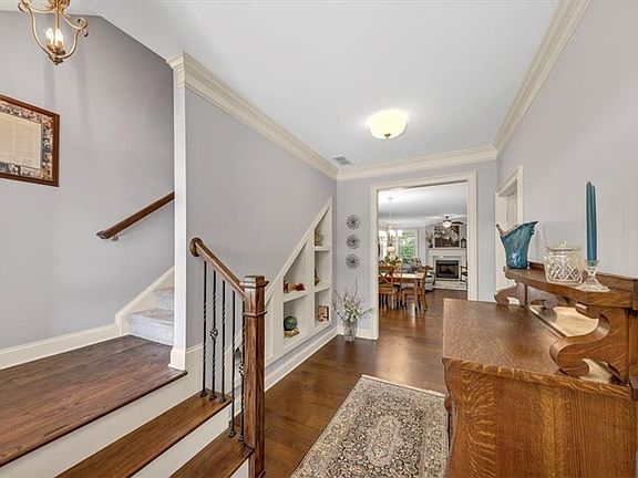 Peaceful and quiet! A beautifully designed and well maintained home located in the 55+ active, adult community of Barrett Preserve. This residence offers a perfect balance of style, comfort, and low-maintenance living. From the inviting covered front porch, step into a spacious foyer featuring built-in bookshelves, setting the tone for the home’s character and craftsmanship. The open-concept design flows effortlessly into the gourmet kitchen, dining area, and great room, creating a warm and welcoming space for gatherings and everyday living. The chef’s kitchen is a true highlight, complete with quartz countertops, a large breakfast bar, stainless steel appliances, ample cabinetry, and a walk-in pantry. The great room centers around a marble fireplace and opens to a covered back patio, ideal for relaxing mornings or evenings outdoors. The primary suite on the main level provides a luxurious retreat with trey ceilings, a spa-inspired bath featuring dual cultured marble vanities, a tiled shower with a comfort bench, and an extra large walk-in closet. Upstairs, you’ll find two spacious guest bedrooms connected by a Jack and Jill bath, along with a generous walk-in storage area perfect for hobbies or seasonal items. This exceptional home in Barrett Preserve combines timeless design with modern convenience—all just minutes from the scenic trails and natural beauty of Kennesaw Mountain.