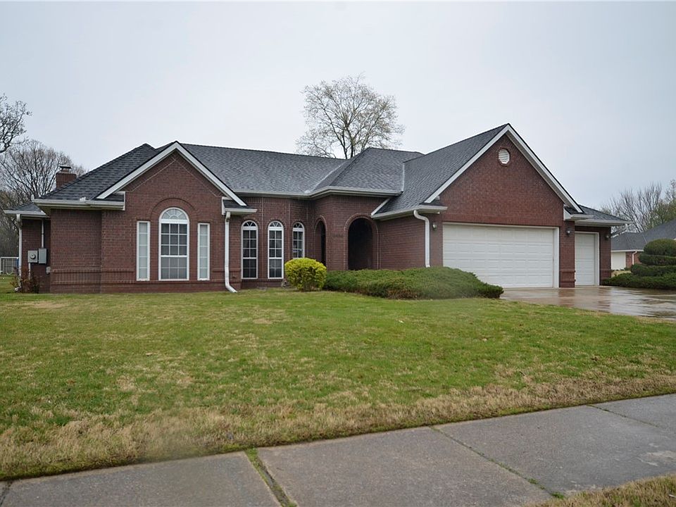 No sign in the yard - Don't miss this wonderful opportunity for this well built, all brick, single level home in established neighborhood. Located on a corner lot with the Dean's Trail Bikeway running beside the home. Dean's Trail Bikeway connects to various bike trails to include The Razorback Greenway, Shiloh Trail, Ford Avenue Sidepath and more. Down the street is Parson Hills Elementary School. A new roof was installed in 2022 with Class 4 shingles. The home includes a coveted 3-car garage with room for all your bikes and/or toys. The home features a split floor plan with a Family Room, complete with gas log fireplace that is separate from the Living Room. A jetted tub plus walk-in shower are featured in the Master Bath while the other 2-Bedrooms share a full Bath. There is a guest 1/2-Bath located in the hallway off the formal Dining Room. A brand new Bosch electric range is in the kitchen and the refrigerator conveys. The spacious yard is 0.39-acres allowing plenty of room for kids and pets to play.