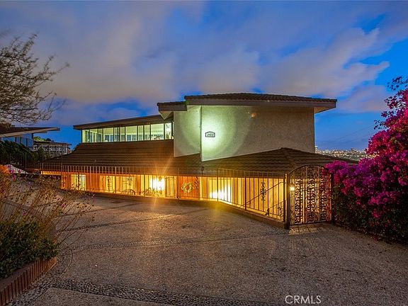 This is THE Unicorn of Signal Hill, with an incredible ultra rare Eight to Ten Car Garage! This immaculate GEM was recently remodeled with timeless updates located on a hilltop. Enter through the circular drive and be dazzled with endless views, a living room balcony, and an exceptional open floor plan. Three bedrooms, three bathrooms, plus an office. Entry into the main floor features an open-concept living area with a cozy sitting area and a huge Living Room and Fireplace. Gorgeous Remodeled Gourmet Kitchen with Quartz Countertops, Custom Cabinets, Island, and a Farmhouse Sink. Thermador Built-in Appliances include a Steam Oven, Warming Oven, Cooktop, and Dishwasher. Huge Master Suite on the main level with Private En Suite bath and Huge Master Closet. Two Large Bedrooms upstairs. Upstairs also features a rooftop enclosed and covered room perfect for an additional office, workshop, or entertaining area! Private Garden Like Patio area off Kitchen and Large Yard off the main level. Dream Garage like no other! The garage has endless possibilities and must see to believe, is a perfect candidate for ADU, and is unlike anything else available now or ever.