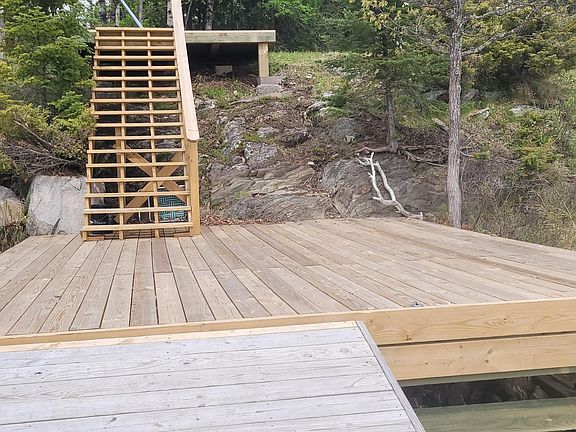 200 feet of the finest southern facing island shoreline on Rainy Lake comes with a gutted 480 square foot cabin that you can make into a cozy guest cabin while you design your new cabin! Cabin has electricity and phone service if you desire a landline. The new metal roofing materials are cut to size and are on site. There is also a brand new high end wood stove waiting to be installed. There is a new water pump for the lake water system, a new electric hot water tank that feeds the newly built 4 x 4 outside shower. Plenty of space to park boats as there is a new 40' floating dock attached to 20' x 20' shore deck. The cabin has a 250-gal propane tank that goes with the sale. Stamp your brand on a piece of Rainy Lake land!!