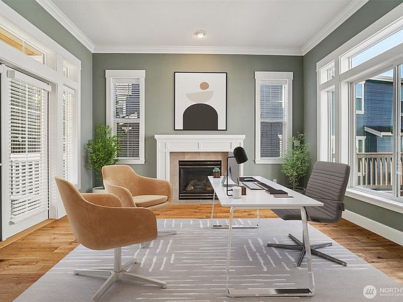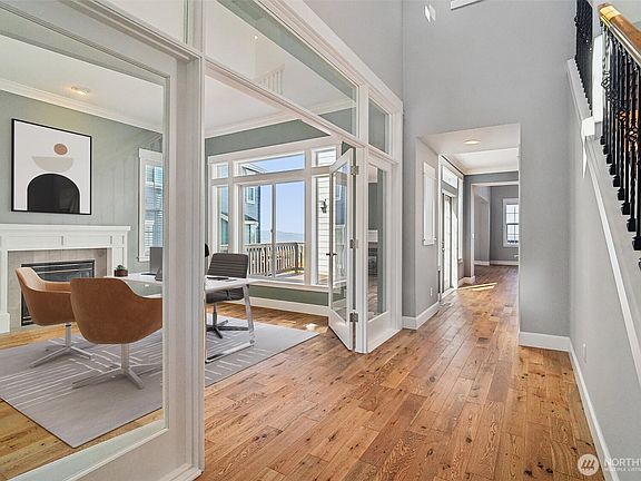 Unparalleled views in The Issaquah Highlands! Natural light, vaulted ceilings & windows maximize the view from every level. Complete w/ 6 Bedrooms and 3 full + 1 ¾ baths! Three bedrooms including primary on 2nd floor w/ loft space, 1 on main near ¾ bath & 2 bedrooms in the basement. An office/parlor with a cozy fireplace & French doors opens to the front porch. The formal dining room w/ double sided FP & French doors opens to the mid-home privacy deck. Large family & basement bonus rooms perfect for multi-functional living. Enjoy expansive views from deck off kitchen. Home features over $100k in upgrades, extended hardwoods, slab granite kit, A/C, new carpet & more. The perfect blend of being conveniently located & surreally private.