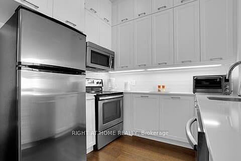 Open-concept layoutLarge windowsNatural lightExtended kitchen cabinetsQuartz countersStainless steel appliancesModern finishes