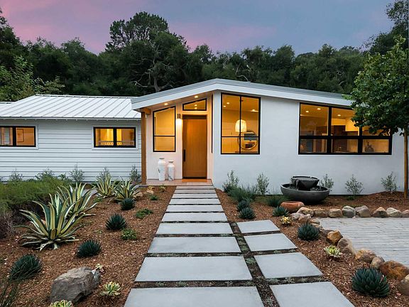 Mid-century modern farmhouse set amongst a sprawling 1.3 acre parkland! Remodeled in 2020, this 3 bed/3 bath home exudes luxury w/ custom finishings & wide-plank white oak floors throughout, complementing its vaulted ceilings & clean, geometric design. W/ a delightful mountain view as it's backdrop, the open concept kitchen is equipped w/ state-of-the-art Café appliances. The primary bedroom enjoys two closets, & an enviable bath w/ an epic oversized shower & dual sinks. Surrounded by a canopy of oaks, a fruit orchard, & drought-tolerant landscaping, the back deck & garden lead to one of this property's wonderful highlights: a detached ADU studio apartment. Located adjacent to the Arcady Estates & just a stone's throw from Cold Spring School, this chic home is all set to move right in!