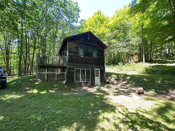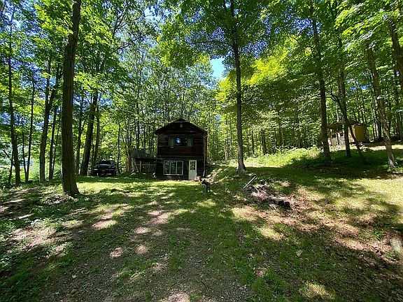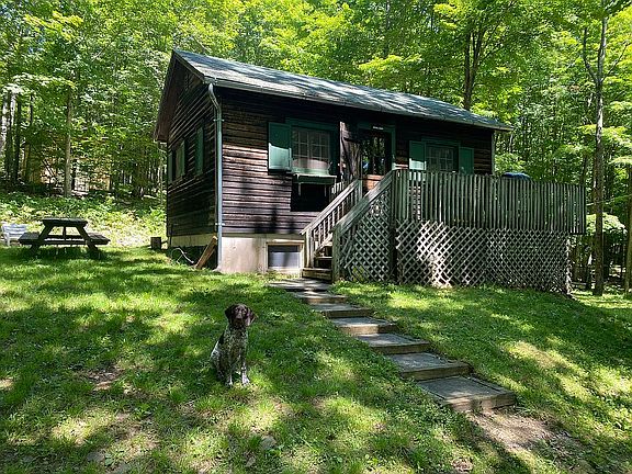 If you are looking for PRIVACY in the mountains, then look no further. This Rustic Cabin/home surrounded by a beautiful Catskills countryside, on 82 private acres is the place you want. Walk into an open main level "Living-Dining Kitchen Great Room” and a Renovated Bathroom. Lower level with Woodstove is an open floor plan that can be used as Guest Bedrooms, office, etc. 6 ft attic space could be converted to an additional lovely small open sleeping loft. This quiet setting is abundant with wildlife, beautiful mature trees, stone walls, and a healthy spring. Head up to your woods for some exploring, nature watching, hunting perhaps and solitude. With OVER 82 ACRES, you can melt into the forest and just be one with the Catskills. Two deeded parcels located on a Town maintained road for all year-round easy access. Minutes to all the area attractions including ski resorts, golf courses, hiking, area restaurants and farm markets. Less than 2.5 HRS from the GWB making this a comfortable driving get-away. Recent improvements include: new well shed in 2019, new 12’ X 12’ Storage/Garden Shed in 2020. Property is less than 2 minutes from the slopes of Plattekill Ski Mountain (Mountain Biking in the summer) and neighboring to the 300 acre 1803 Stone Tavern Farm (known for it being a top Catskill Destination Wedding Venue). Great income opportunity for renting the property on the weekends to wedding guest. The wedding venue is currently fully booked for the next two years! 75 acres of the property was just recently enrolled in the New York State Forest Tax Law 480-A program, which reduces the property taxes for woodland devoted to forest crop production by 80%. By going through this process, a forest management plan and timber value for the land was made. The plan identified good hardwood sawtimber including Hard Maple, Black Cherry, Red Oak, White Oak, Basswood, White Ash and Red Maple among others, and established a harvestable timber value of $24,734. Along with the great deer and turkey hunting on the property. The property privately boarders on one back side of the 1,788 Acre Plattekill State Forest, the other side privately boarders the 2,761 Acre West Settlement Preserve, which is owned by the DEP and allows recreation access by permit only on the far mountain side. Overall the property sits in an amazing private setting that gives private only access to an abundant 4,549 acres of recreational land.