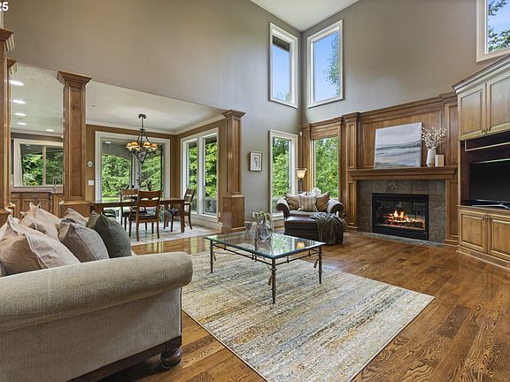 Exquisite Stafford Estate. This home is truly a treasure, located on a desirable no-outlet street. Nearly 5 acres with beautiful landscaping, mature trees, and a view of serene privacy. Lots of useable property around the home which includes a large yard and orchard. The lower portion of the property is forested and the property benefits from a forest deferral. Gleaming hardwood floors, timeless millwork and built in features, high ceilings that capture the privacy of the lot and allows the natural light to flood you with warmth. The gourmet kitchen has craftsman quality cabinetry and Jenn-Air built in appliances, connected to the formal dining room by a butler's pantry with wet bar. Perfect for entertaining guests. Primary bedroom on the Main Level with a spa like bath and its own private deck overlooking the back of the property. Full walk out basement with wet bar, media room, office, bedroom and bath, and a huge storage room. This home truly suits every possible need in a practical and luxurious way. A 1 year Home Warranty is included. High school for 2024-25 year is Wilsonville, but there is a boundary change that will make it West Linn High School for the 2025-26 school year. Seller is a licensed Broker in the State of Oregon.