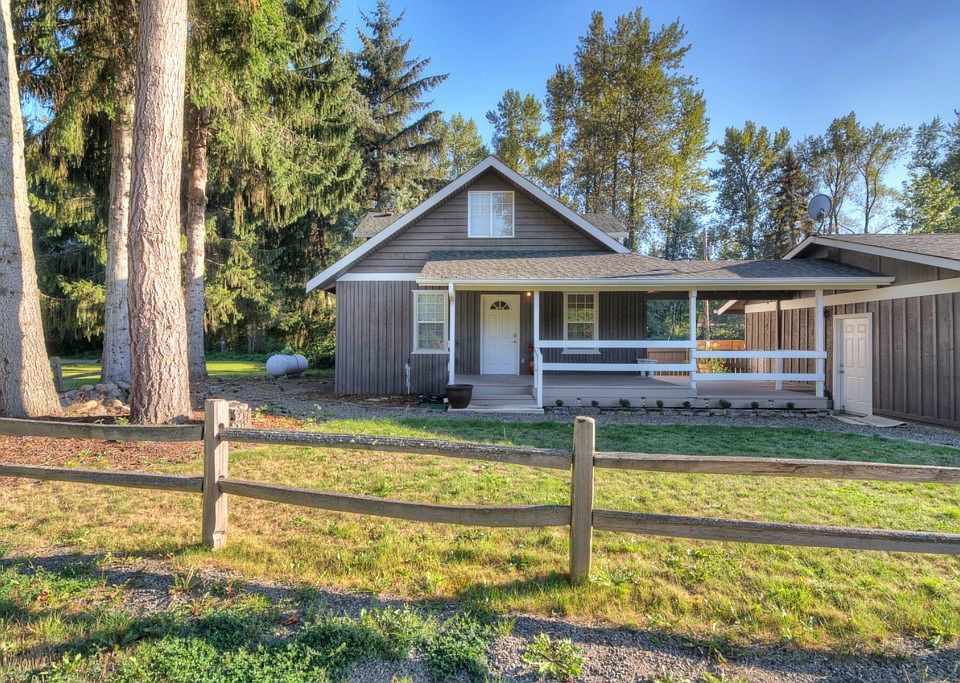 This charming country setting is picture perfect! A classic split rail fence & spacious covered porch give a classic welcome to this renovated farm house. Generous detached garage/shop w/ adjacent RV parking. Freshly updated interior has a bright & comfortable feel. 2 beds on main & a large upstairs bedroom w/office space lends many options. Cheery kitchen features an island, stainless appliances & sunny eating nook. Huge fully-fenced yard. Don't miss out on this private retreat!