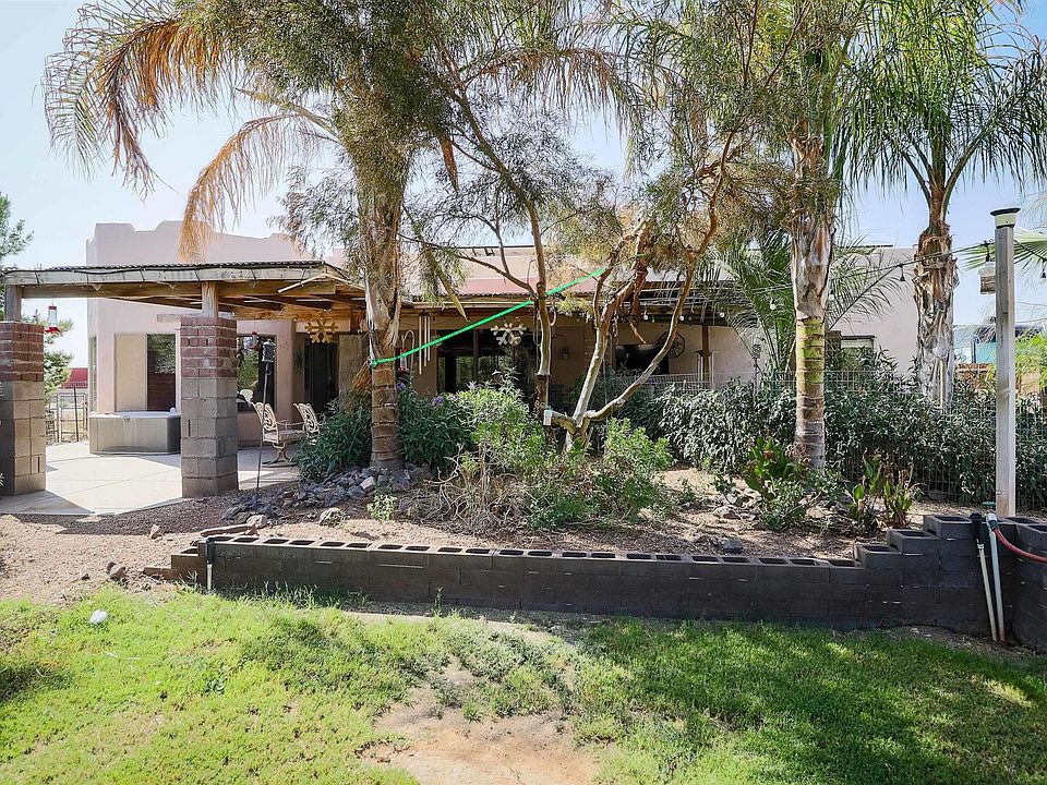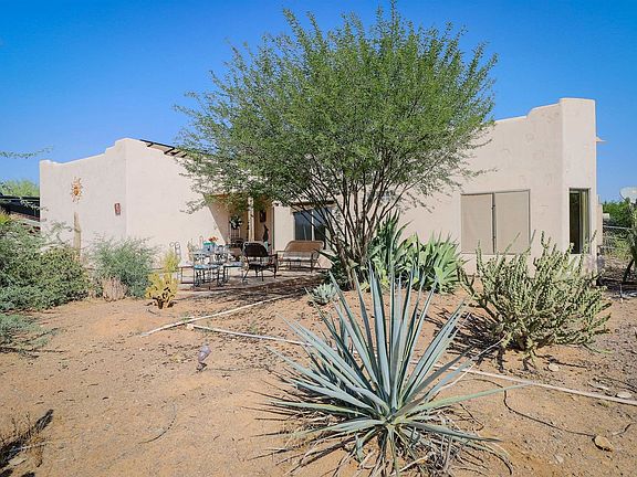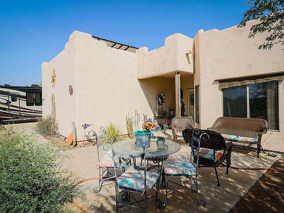 Welcome to your new home on a paved road with 4 on the well and the ability to trot for miles from here or take your side by side to Wickenburg for lunch. This well cared for home includes 3 bedrooms and a den, north south exposure, mountain views, a kiva fireplace, covered back patio and fenced yard and a side entry 2 car garage. The landscaping is low maintenance, and there is a RV hook up on the west side of the home.