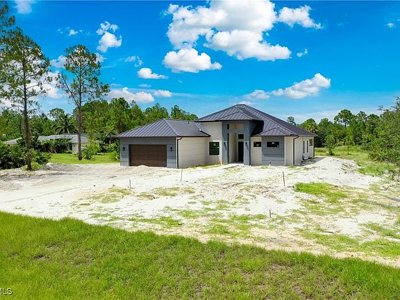ALMOST COMPLETED-Welcome to your future dream home in the estates! Updated Photos coming soon! Currently under construction and nearing completion, this stunning Wellington model is thoughtfully situated on a 100% upland 2.73-acre parcel, offering privacy, space, and endless potential to create your ideal Florida lifestyle. With 3,767 total square feet and 2,416 square feet under air, this custom-designed residence combines open-concept living with timeless architectural details. As you step into the grand entryway, you’ll be welcomed by soaring 16-foot ceilings, an airy and spacious layout, and high-end finishes that are being carefully crafted with attention to detail. At the heart of the home, a chef-inspired kitchen—featuring solid wood cabinetry, a large center island, dual pantry cabinets, and a custom backsplash, all designed to seamlessly flow into the main living area for easy entertaining. Pocketing sliding glass doors create a 12-foot-wide opening that connects the interior living space to the under-truss lanai, offering an effortless blend of indoor-outdoor living. The outdoor area is complete with a summer kitchen which is part of the planned design. Direct access from the outdoor area to the third full bathroom, this space is perfectly positioned to serve as a future pool bath once your outdoor oasis is complete. The primary suite will be a luxurious retreat with an 11-foot tray ceiling, dual walk-in closets, and large windows overlooking the backyard. The en-suite bathroom will feature a 9-foot dual-sink vanity, freestanding soaking tub, and a spacious walk-in shower. Three additional guest bedrooms, each with 10-foot ceilings, provide comfort and space for family or visitors. Thoughtfully designed for durability and efficiency, the home includes impact doors and windows, a metal roof, whole-house reverse osmosis system, two-zone A/C, generator-ready water setup with gravity-fed septic, and a Taexx pest control system with termite baiting. Let your imagination run wild with the land that offers plenty of room for a future pool, detached structures, gardens, horses...this one-of-a-kind estate offers endless possibilities for customization and expansion. Scheduled for completion OCTOBER 2025.