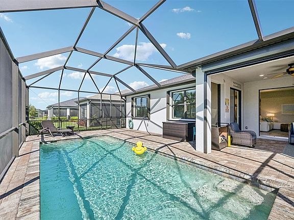 Stunning 3-Bed, 2-Bath 2023 Pool Home on Corner Lot with Water View & Custom Upgrades, ideally situated on a spacious corner lot in a serene, sought-after Cedar Grove Community. Enjoy true Florida living with breathtaking water views right from your backyard, complemented by a sparkling private pool—perfect for relaxing or entertaining year-round. Enjoy no maintenance landscaping, This home features custom Elite Hurricane remote controlled ballistic screens for the lanai area, remote controlled accordion shutter for the front door, and mounted bronze colored accordion shutters for the windows. Home is WIRED for Smart Home application if desired, for ultimate peace of mind and convenience. Zebra custom electric blinds on sliders and dining room windows. The open-concept layout offers abundant natural light, a spacious living area, tray ceilings in living area and master suite and a well-appointed kitchen with modern finishes and ample storage. Attached extended 2-car garage with epoxy floor. Step outside to your private oasis with a screened lanai and pool area—ideal for morning coffee or evening sunsets. Lanai area has water, electric, and vent installed for future outdoor kitchen. Conveniently located near Interstate 75, shopping, restaurants, parks, schools, medical, Cool Today Park, Tampa Bay Rays ballpark, downtown Wellen Park and the beautiful pristine beaches of the Gulf of Mexico! Don’t miss this rare opportunity to own a move-in-ready home with premium features, upgrades and views in North Port, Florida! Schedule your private tour today and experience Florida living at its finest!