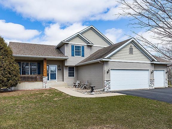 If you have been waiting for a home that is move-in ready and has stunning finishes for a great price, look no further! Nestled at the end of a cul de sac and sitting on a half-acre lot, this home has beautiful curb appeal with stonework, an inviting porch in the front, and a large backyard! Inside, the remodeled kitchen features an upgraded butcher block island, white enameled cabinets, new black stainless steel appliances, and a white subway tile backsplash. The living room features an updated fireplace and mantel with a new carpet and pad! The walkout lower level features a workout room, new carpet and pad, and an updated tiled three-quarter bathroom. A newer water heater, furnace, a/c, and windows ensure you can sit back and relax in your new home! This one won't last!