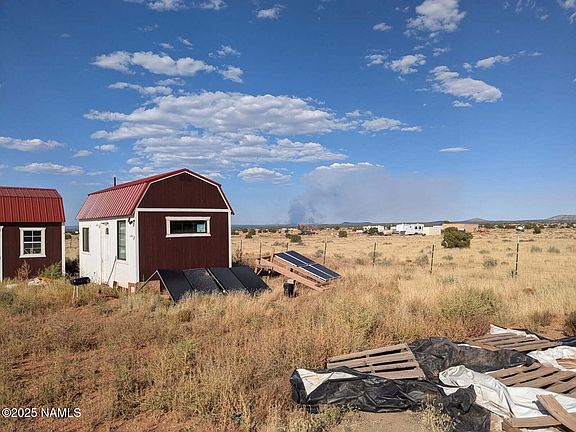 Gorgeous 2.94 acre off grid property is gated & fenced with solar. 2 10x20 side lifted barns, one has on demand hot water, one partially finished.1.1 kw solar w/8 12v batteries. 2500 gal water tank plumbed replacement pump included(not installed). 2 14x50 Gothic greenhouses 9x14 nursery supplies inc. Just one mile off the 180 in unit 7w with antelope, bear, deer, turkey and elk in the area. Cool Mountains 6090'