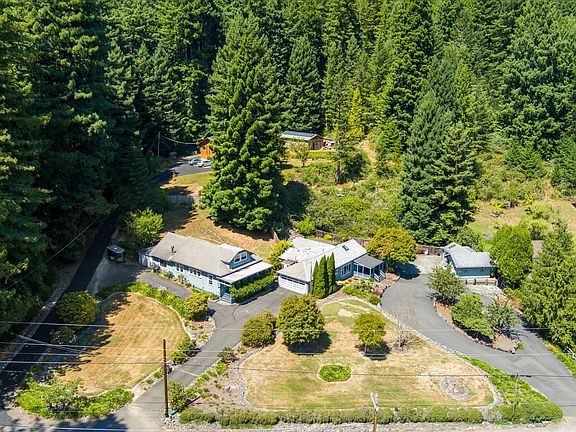 TWO HOMES on one acre lot in beautiful Freshwater. Escape the fog and soak in the mountain and redwood views. The main home, approximately 2,000 sq. ft., offers 4 bedrooms, 2 baths, a bonus room, wood stove, forced air heat, 1-car garage, and is currently rented for $1,900 per month, providing great income potential. The second home is approximately 1,400 sq. ft. with 2 bedrooms, 2 baths, a loft, gas fireplace, and 2-car garage. Both homes have community water, septic, propane, and irrigation systems. The heated, insulated shop with utility sink is perfect for hobbies, storage, or creative use. The property features two pear trees, two varieties of cherry, two varieties of apple, and kiwi vines located behind the ADU, ideal for the garden enthusiast! Seller encourages backup offers!