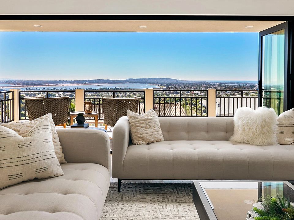With the best view on the market, 2481 La Marque is Pacific Beach at its finest. Perched atop one of the area's most desirable hillside enclaves, this reimagined coastal retreat delivers unobstructed, panoramic and direct vistas centered on Mission Bay, Downtown, Coronado, and the Pacific Ocean. From sunrise to sunset, no other current listing can match the visual experience this home offers. Listed $500,000 below appraised value, the home blends timeless design with smart functionality. The main level features a dramatic great room with vaulted ceilings, a chef’s kitchen with custom quartzite counters, a six-burner stove, double oven, and a windowed butler’s pantry. The elegant primary suite and an additional bedroom enable easy single-level living. Expansive decks and bifold doors blur the line between indoors and out, while a dining room picture window captures the sunrise. Downstairs, two more bedrooms, a full kitchen, bath, and a separate private entrance from the street below offers flexibility for guests, multigenerational living, or rental income. Every room showcases the view, reinforcing both the luxury and long-term value. The patio is gas-ready for a grill or hot tub. Upgrades include all-new landscaping, modern dual-pane windows, and new doors. This home is in absolutely mint condition, ready for move-in asap. Quietly tucked above the city yet minutes from the beach, restaurants, and freeway access—2481 La Marque offers a rare front-row seat to San Diego's iconic sights.