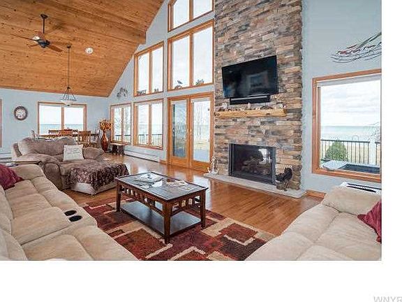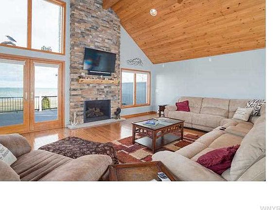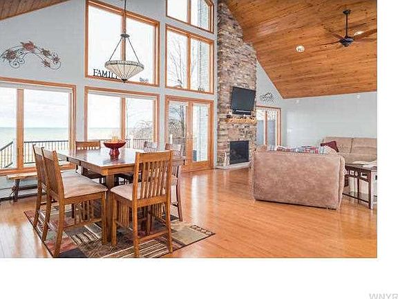 Custom built home with 100 ft of waterfront & reinforced shoreline! Over 150K in improvements! Lakefront views from 32X30 Great Rm w/ floor to ceiling windows. Gas fireplace /w stone surround 2015. French drs leading to 18x30 Trex deck w/Sunken Hot Tub 2015. Heated Hardwood floors 2015. Custom kitchen w/ New stainless steel refrigerator and microwave. Walk in pantry. 1st flr lndry/w new washer/dryer. Mstr bdrm suite w/walk in closet and Mstr bath. Second level loft w/2 bedrms/full bath. Boiler/AC 4 zones 2015. Septic 2014. Extra detached 25x25 garage heated/AC 2015. This home is truly amazing!