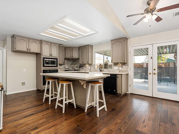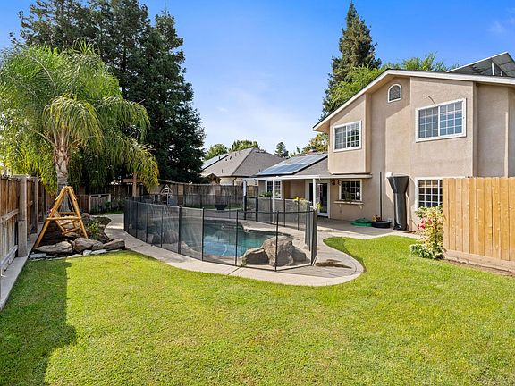 Nestled at the end of a peaceful cul-de-sac in a well-established Kingsburg neighborhood, 2481 Skansen Street offers a lifestyle that feels both serene and connected. With over 9,800 sq. ft. of land, alleyway access, extended RV parking, and owned solar for energy efficiency and lower utility costs, this property blends charm with practicality - an ideal haven for car or toy enthusiasts while still offering plenty of private outdoor living space.Inside, just over 2,000 sq. ft. of living space has been tastefully updated. The heart of the home - the kitchen- has been fully remodeled with sleek quartz countertops, a stylish backsplash, pot filler with inline filtration, under-cabinet lighting, and a brand-new stove with a custom vent. A hand-crafted mantel beam above fireplace, fresh interior paint, new blinds throughout, and an added ceiling beam in the living room bring warmth and character to the space.The floor plan was designed for convenience: a downstairs bedroom with a full bathroom offers flexibility for guests or multi-generational living, while the laundry chute upstairs adds a touch of everyday ease with the laundry on the main level. Two upstairs bedrooms boast sweeping views of the Central Valley farmland, while the primary suite is a true retreat. Step onto your private balcony to take in the serene beauty of mature trees and watch the sun rise and set in peaceful perfection.Step into the backyard and discover your own retreat: a Pebble Tec pool, lush grass, string lights, and thoughtfully upgraded landscaping. Whether it's a lively summer barbecue or a quiet evening under the stars, this backyard was designed for both relaxation and celebration. Upgrades such as a new pool pump, pool robot, and French drain system ensure your oasis stays beautiful and functional year-round.Additional upgrades include a brand-new Lennox A/C, condenser, and furnace (2023), new fencing, upgraded light fixtures throughout, and a finished garage with barn wood accents and a stainless-steel workbench. With owned solar powering your home, every detail has been considered to make this property as efficient as it is beautiful.Located just a short distance from Earling Park and surrounded by the natural beauty of the Valley, this is more than a house, it's the place where your next chapter begins.