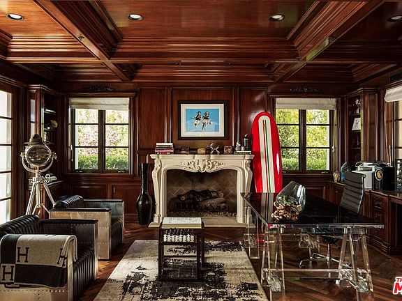 Set within the coveted guard-gated enclave of Bella Vista Estates, just steps from Beverly Park North, this Mediterranean-inspired estate offers 7,400 square feet of refined luxury on more than an acre of pristine grounds. Designed to capture sweeping canyon and mountain views from nearly every room, the residence blends timeless European craftsmanship with modern sophistication. A dramatic two-story foyer introduces elegant formal living and dining rooms, a chef's kitchen with top-tier appliances and breakfast nook, and an expansive great room with a state-of-the-art screening area. A mahogany-paneled study provides a workspace of rare elegance, while imported marble, French oak floors, and limestone accents enrich the home's interiors. The primary suite serves as a secluded retreat, complete with dual walk-in closets, a spa-inspired bath, and a limestone terrace overlooking manicured gardens. Outdoors, a resort-like setting unfolds with a full outdoor kitchen and wood-burning oven, a flat lawn, and a pool and spa embraced by lush landscaping. With its gated drive, exceptional privacy, and seamless flow between indoor and outdoor living, this Bella Vista estate embodies the pinnacle of Beverly Hills luxury.