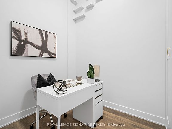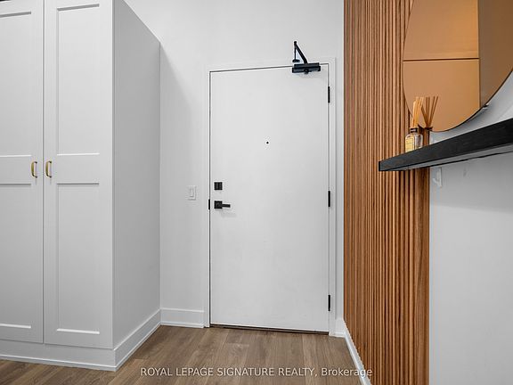 Welcome home! This stunning and spacious 1 BR + Den condo offers 675 sq. ft. of beautifully upgraded interior space, plus an additional 30 sq. ft. balcony overlooking the lush rooftop gardens a perfect place to unwind. Step inside to soaring 11-ft ceilings and custom renovations such as the feature walls in both the living and bedrooms & incredible light fixtures that elevate this suite to a new level of sophistication. The contemporary kitchen boasts quartz countertops, upgraded paneled stainless steel appliances, and a sleek, thicker 2 countertop ideal for cooking and entertaining. Recent upgrades include frameless mirror bypass doors, modern roll blinds with blackout in the bedroom, upgraded interior doors, and a front-loading washer/dryer. The unit also offers a generous Den space that fits a single bed and was used as a bedroom. Freshly painted and move-in ready, this suite also includes a locker and underground parking space. Beyond your front door, indulge in resort-style amenities, including a seasonal outdoor pool, state-of-the-art gym, yoga studio, sauna, pet wash station, party/meeting rooms, a theatre, wine-tasting room, ping pong room, kids playroom, and more! Located in an unbeatable location, you're steps from Walmart, Superstore, LCBO, restaurants, shops, and public transit right at your doorstep. Don't miss this opportunity