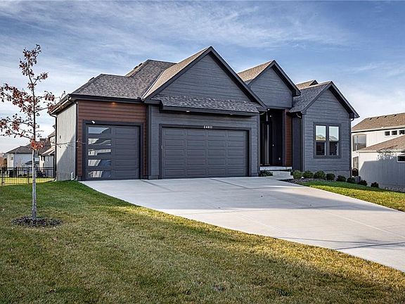 Gorgeous, better than new Chalet XP floor plan by KC Builders & Design. No need to build, save time & money with this barely lived in home built in 2021 with loads of upgrades! *UPGRADES include aluminum fenced in yard*tankless hot water heater for instant hot water* water softener*plush carpet*Classy & modern finishes throughout*wide-plank natural hickory hard wood floors*beamed ceiling & floor to ceiling stone fireplace in great room open to gourmet kitchen w top of the line appliances including gas stove*large eat-up island* double entry walk-in pantry off kitchen & drop zone*tons of natural light*2 bedrooms on the main level including primary bedroom* ensuite bathroom with free standing tub, walk-in shower with rain head, large walk-in closet conveniently connects to laundry room. Wide open space in the lower level too with bar & custom beer taps. Two bedrooms with jack & jill bathroom*generous size closets & plenty of storage*great outdoor space with composite deck & patio*neighborhood pool*award winning DeSoto schools*a coveted western Shawnee community with easy interstate access