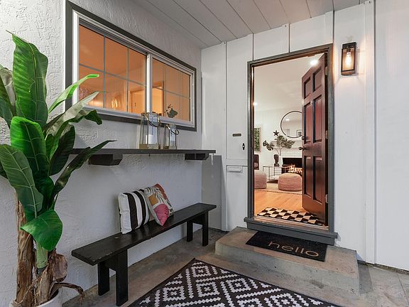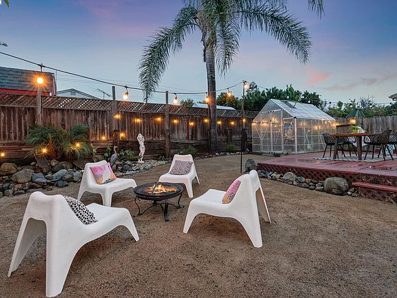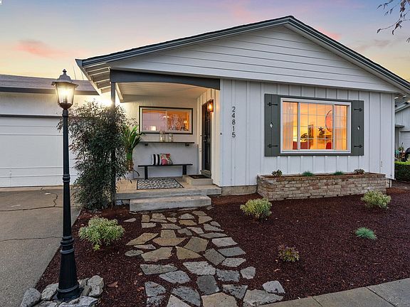 Situated on a quaint street, 24815 Townsend Avenue offers contemporary, single-level living in the heart of Hayward. As you approach the home, you are greeted with a charming and modern facade which sets the stage for what lies beyond. This home boasts a total of 1206 SqFt, 3 Bed, and 2 Baths. Upon entering, you are greeted by an open, light filled living room accented by a brick fireplace and freshly refinished hardwood floors, which flow through the rest of the home. Just beyond lies an open kitchen featuring stainless steel appliances, laundry nook, pantry and spacious dining area. A back door leads directly to the patio, perfect for al-fresco dining. The rear bedroom primary suite includes a full bath with glass-enclosed shower, vanity dressing area, and generous closet. Sliding glass doors open directly to the expansive back deck, and the rest of the yard includes a greenhouse, water feature, and palm tree-lined backyard space ideal for gardening or play. The other two bedrooms have built-in closets and storage, hardwood floors, and share a hall bath with shower-over-tub. Plenty of extra storage is available with closets and built-in cabinets, a 2-car garage, as well as a rear shed and greenhouse. Easily access freeways, Bart, Southland Mall, and local amenities blocks away.