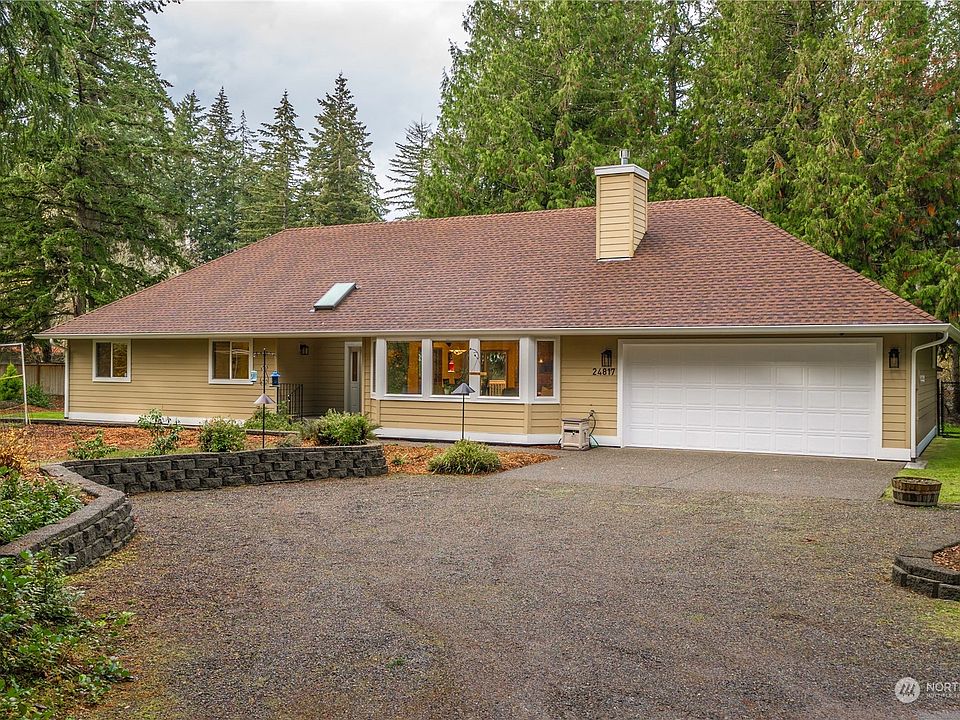 Built new from the ground up in 2002, this one story gem on 1.25 private acres is a rare find! Inside, enjoy your spacious open concept design, gourmet kitchen with quartz counters, a 5x7 island, and all newer appliances that stay. Offering 3 bedrooms, a den, plus an extra 9X12 finished room in the garage, this home has room for everyone. Relax by the gas fireplace, or unwind on the deck overlooking the fenced backyard. Garden space, apples trees, & blueberries. Storage shed, generator ready (generator included), no HOA, R4 zoning (4 dwellings per acre), and on a quiet, dead-end street—minutes from the city. Close access to HWY 18 and Covington MultiCare Hospital.