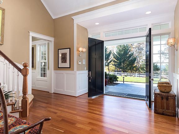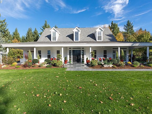 Gracious 5261 sq. ft. southern farmhouse on 5 gated acres in Stafford/Wilsonville. Crisp white exterior with glossy black accents. Wide, welcoming verandas across front & back. Natural cherry hardwoods & cabinets with hand-stenciled accents. Master suite on main, 2nd master + 2 gst rms & media rm up. Beautiful corner sun room, Viking appliances in entertainer's kitchen. Separate barn w/ sport court, exercise rm, kitchenette & bath.