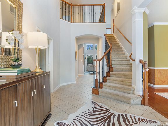 This stunning residence offers timeless elegance and modern upgrades throughout. A grand two-story entrance sets the stage for an open, airy floor plan filled with natural light. Beautiful wood and tile floors, custom built-ins, and rich wood shutters add warmth and sophistication. The spacious gourmet kitchen features granite countertops, a center island, and abundant cabinetry-perfect for entertaining. Formal dining and a separate study provide versatility, while the large upstairs retreat/game room adds flexible living space. The expansive master suite is a private escape, boasting a spa-like bath and a custom-designed walk-in closet. Step outside to a backyard designed for enjoyment, with a dedicated playscape area. Additional highlights include epoxy garage flooring and abundant storage. Notable Upgrades & Features: * New HVAC (2021) * Top-of-the-line water softener & filtration system (2023) * New tankless water heater (2023) * New roof (2019) * Entire interior freshly painted All of this in a prime community offering amazing amenities with an elementary school just a short walk away. Experience the perfect blend of luxury, comfort, and convenience in one of San Antonio's most desirable neighborhoods.