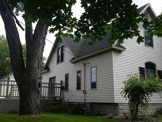 This lovely home has character throughout! From the scalloped trim on the vinyl siding peaks, to the tall floor moldings, many wood floors, a claw foot tub in upper bath, and a dining area with French doors leading to the 21x22 deck overlooking the over half acre yard! This lovely home features a 13x18 master bedroom with a walk-in closet, 2 full baths, a full basement and a 1,300 square foot heated garage that could fit 3-4 cars and has a wide staircase to the upper level with a finished bon...