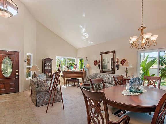 Relax in this resort style setting on .57 acre w/pool, spa, waterfalls, palms, cabana, horseshoe pit, lawn area, garden, PLUS gated RV pkng at side AND gated access to rear of yard w/large pad, open space, fruit trees & apprx 19.5x13.5 storage bldg/shed! A beautiful brick design courtyard leads into this warm, inviting interior w/vaulted ceiling & open floorplan. The formal living & dining room lead to kitchen w/sit-up bar & informal dining & opens to adjacent family room w/fireplace & view to backyard.